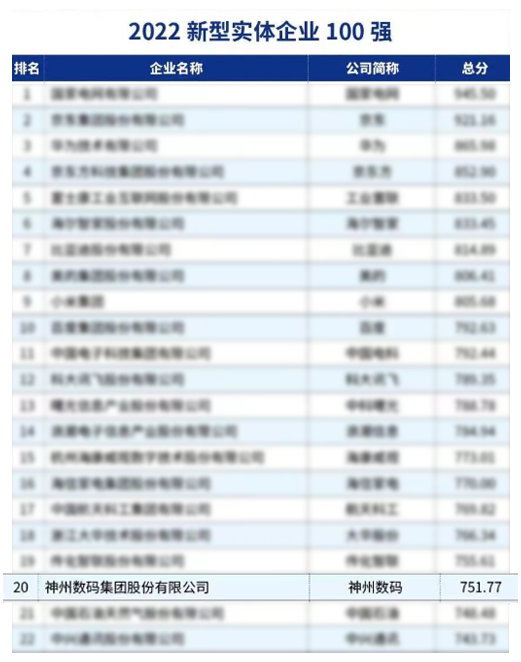 11月27日,中国企业评价协会在中国企业家博鳌论坛“中国式现代化下的新型实体企业发展之路”研讨会上重磅发布了“2022新型实体企业100强”榜单,风暴娱乐数码(000034.SZ)凭借强劲数字化服务能力和赋能数字经济发展的丰富实践成功入选,位列榜单第20位、现代信息技术服务企业前列。